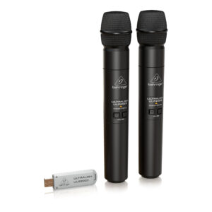The ULTRALINK ULM202USB Wireless Microphone System leaves you free to work the room to your heart’s content, without the hassle and restriction of cables underfoot. The highest-quality sound is provided by the 2 dynamic hand-held mics thanks to their built-in transmitter, which operates in the license-free 2.4 GHz range. The dedicated ULM receiver not only connects to your PC/Mac computer’s USB port for recording directly into your favourite DAW application but also works with a wide range of Behringer “Wireless-Ready” mixers and powered speakers – for the ultimate in versatility.