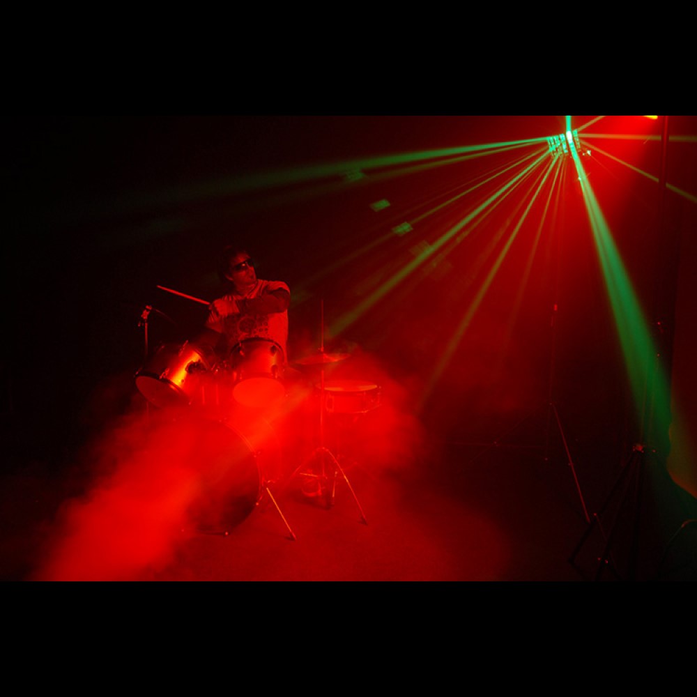 The Chauvet Hurricane 1000 is a lightweight and compact fog machine combining dense fog output and portability. It can be operated from a distance using either the included wired or wireless remote. After an initial heat up period, the Hurricane 1000 is always ready to provide fog on demand. A manual fog button provides easy control at your fingertips and the LED-illuminated tank enhances operation and safety indicating heater status and fluid levels. The machine has ultra-fast heat up time for a quick setup and residue-free water based fog output.