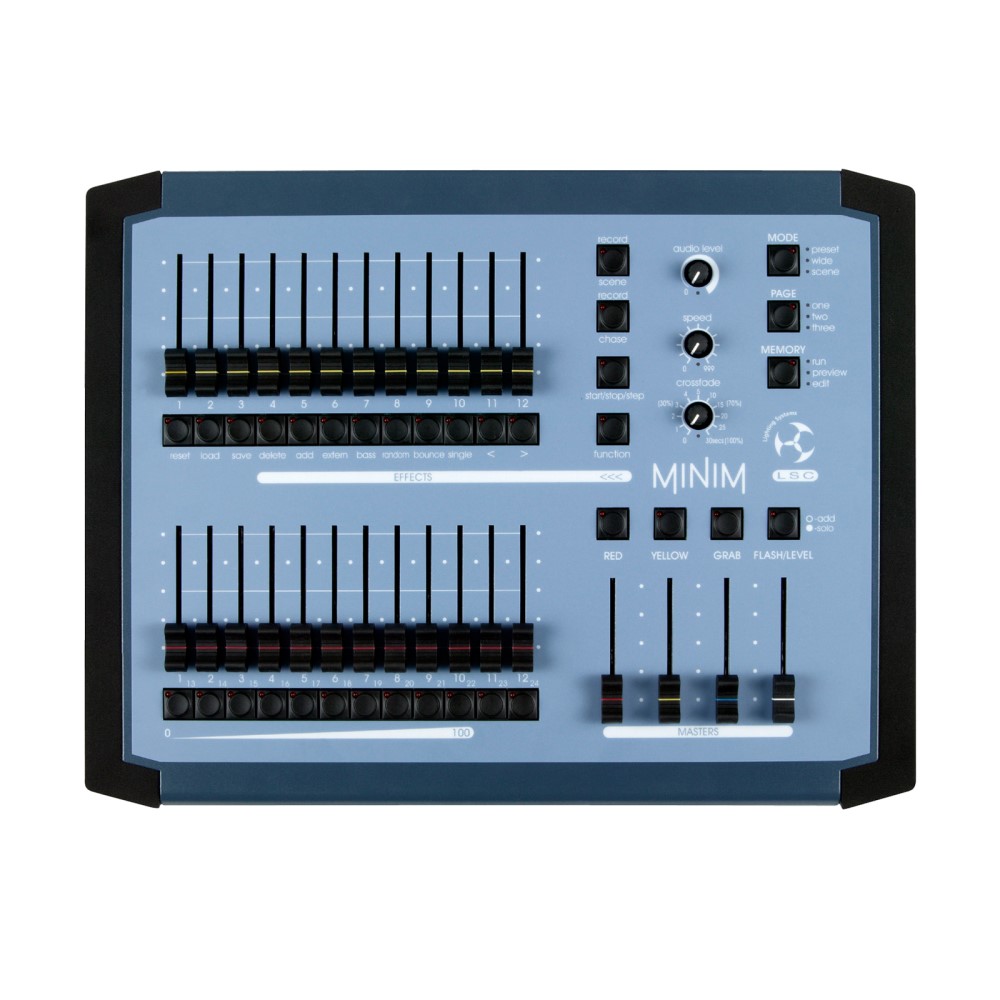 The MINIM has been specifically designed to compliment the maXim range, filling a void for the entry level user both in features and price. Attractively styled and utilizing the familiar programming and playback system popular on all LSC desks, the MINIM delivers a very easy to use platform with quick access buttons to all major functions ? no menu driven systems.