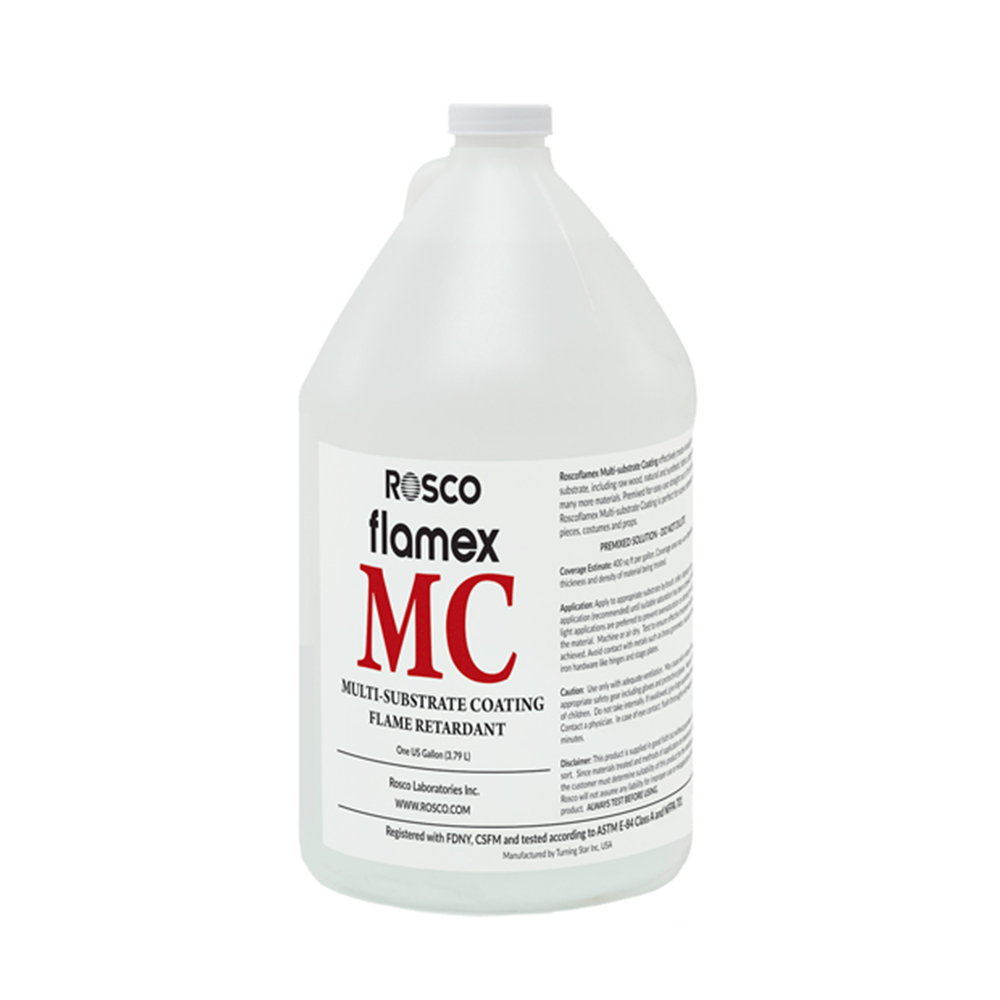 Roscoflamex MC is formulated specifically to treat virtually any substrate commonly used in props and scenery construction, including raw wood, natural and synthetic fabrics, paper, and many more. See below for a more detailed list.