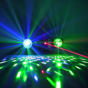 Don’t be confused by the size! Despite being very compact, the VIVIDSTARTER is the perfect party starter! With the included telescopic stand, it has the ability to fill a room with light from two LED Balls, RGB PAR, White/UV strobe with Red and Green lasers! With the supplied remote and on-board auto/sound modes, starting the party has never been this easy!